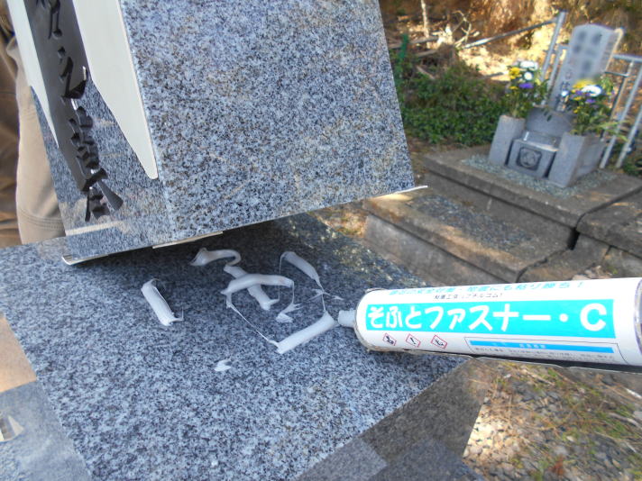 次に竿石です。こちらも耐震ボンドを使用し据え付けます