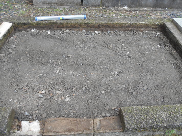 延べ石が据え付けられたら、御影石納骨室を据え付け戒名板の基礎コンクリートを打ちます