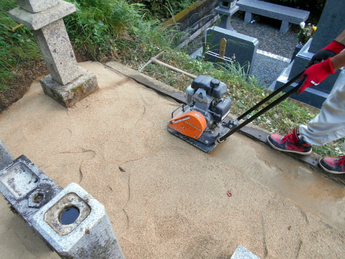 散水の後、さらに転圧します。