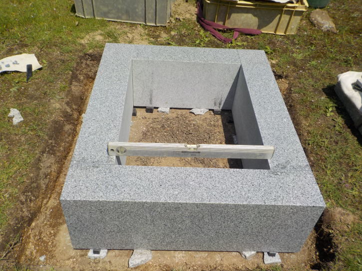 5月も終盤、暑くなったり涼しくなったりと気温が変わる毎日ですが雨があまり降らないので現場仕事は順調に進んでいます。今回は舞鶴市北吸墓園で新しいお墓の工事が完了しましたのでご紹介させていただきます。こちらの霊園ではお墓の形、大きさが決まっています。洋墓になります。まずは基礎のコンクリートの上に下台(4つ石)を据え付けます。