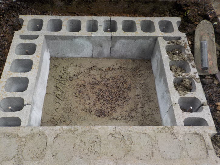 次にカロート(納骨室)をブロックで施工します。ブロックの各箇所には鉄筋を打ち込みます。