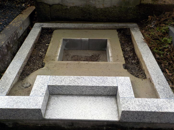 工事場所は京都府舞鶴市西舞鶴寺院墓地です。まずは工事前です。巻石は据え付けてありますが、入口が無いので前の巻石を取り外し新たに入口を作ります。