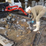 次にこの上に砕石を敷き、ランマーで転圧し地盤を固めます