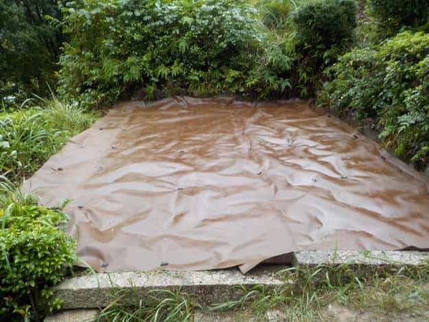 墓石を撤去後、防草シートを敷設しました。