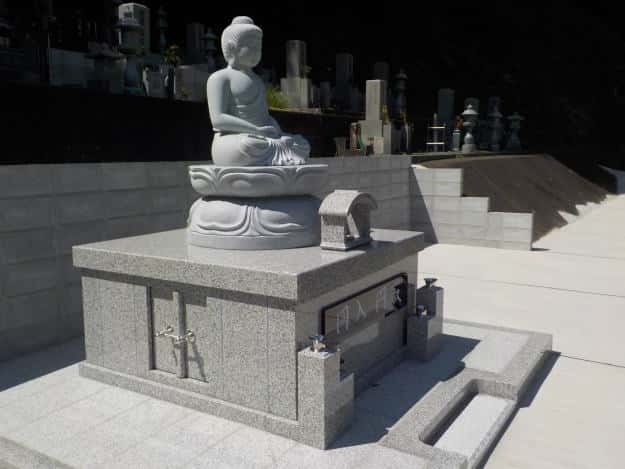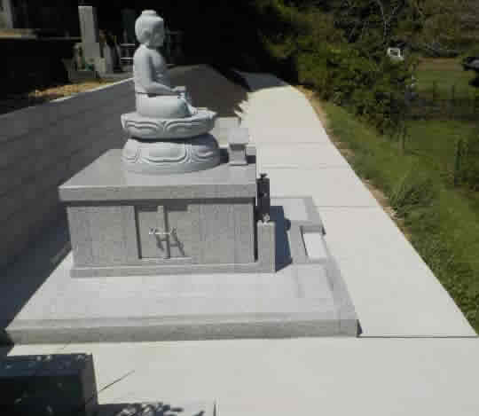 土台の石は中国製御影石を使用しました。裏側のアルミ製のドアを開けて納骨します。ご住職様、檀家の皆様に喜んで頂きました。